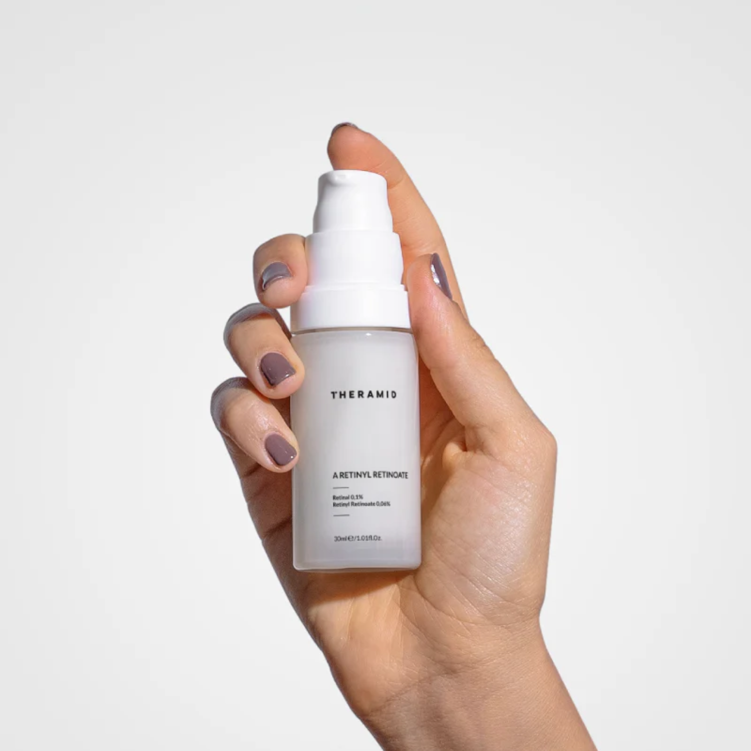 Theramid - A-RETINOATE - pretnovecošanās līdzeklis sejai. Tas ir emulsijas seruma veidā, kas labi uzsūcas un ir bez smaržas. Līdzekļa sastāvā esošais pantenols nomierina, mitrina un atjauno ādu, bet 0,1% retināls samazina grumbas un krāsas izmaiņas, uzlabojot ādas tvirtumu. E vitamīns aizsargā pret brīvajiem radikāļiem un aizkavē novecošanos, savukārt retinilretinoāts un nātrija retinoilhialuronāts nodrošina efektīvu pretnovecošanās iedarbību bez kairinājuma, apvienojot retinoīdu priekšrocības ar intensīvu mitrināšanu. Produkta formula ir vegāniska.