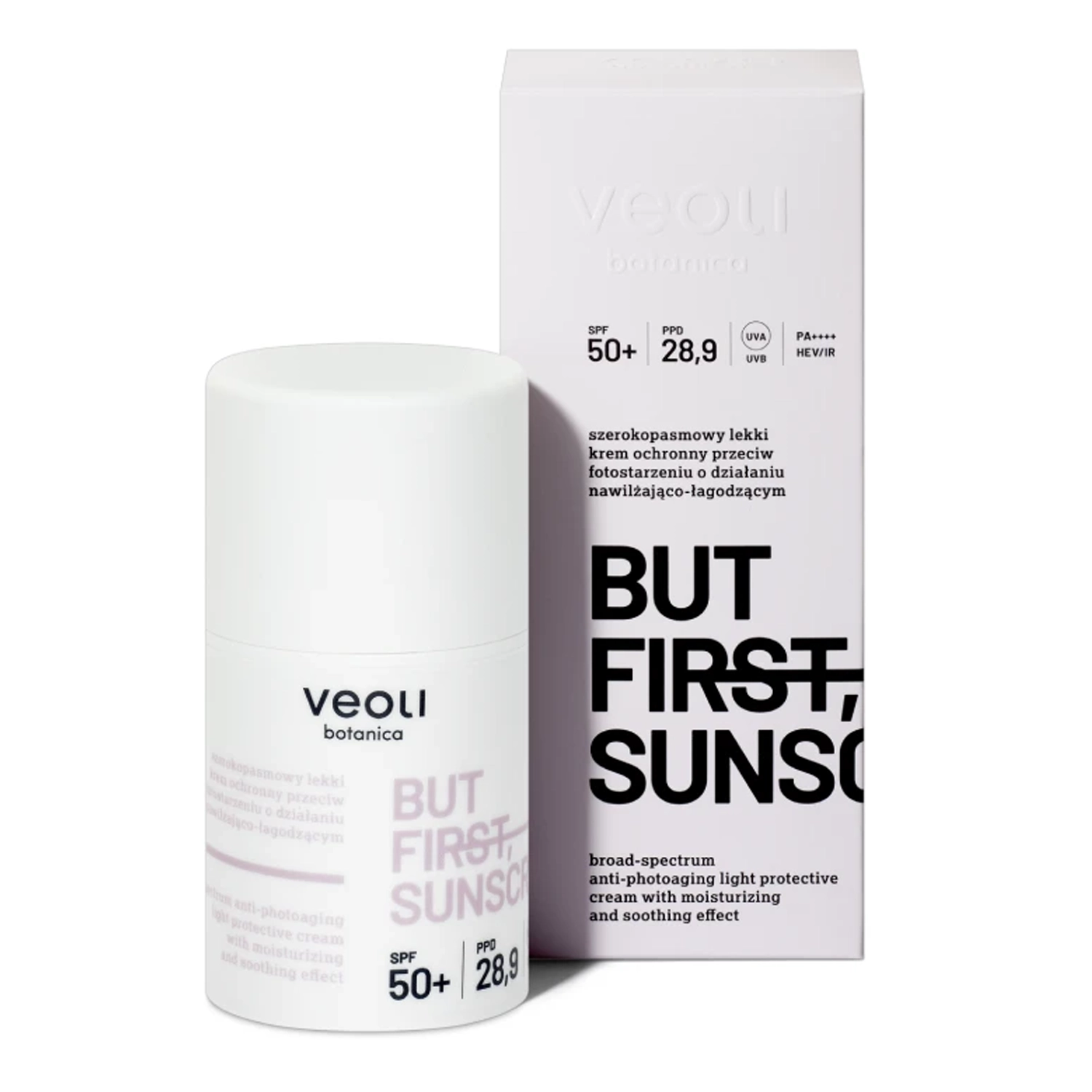 - Viegls, mitrinošs krēms ar SPF 50+ aizsardzibu un nomierinošu iedarbību