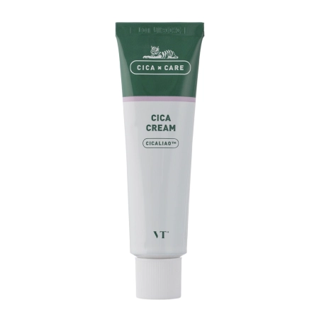 VT Cosmetics - Cica Cream - korejiešu krēms ikdienas sejas kopšanai ar želejveida tekstūru. CICA komplekss, kas sastāv no gotu kolas ekstrakta un tā izolētajām vielām, uzlabo ādas mitrināšanas līmeni un nomierina kairinājumus un iekaisumus. Pantenola pievienojums paātrina epidermas atjaunošanu, bet beta-glikāns neitralizē brīvo radikāļu kaitīgo ietekmi. Savukārt propolisa ekstrakts un dārza portulakas ekstrakts atbalsta krēma nomierinošo un pretiekaisuma iedarbību. Tikmēr dabiskais starpšūnu cementa elements jeb keramīds NP nostiprina ādas hidrolipīdu barjeru un atjauno to.